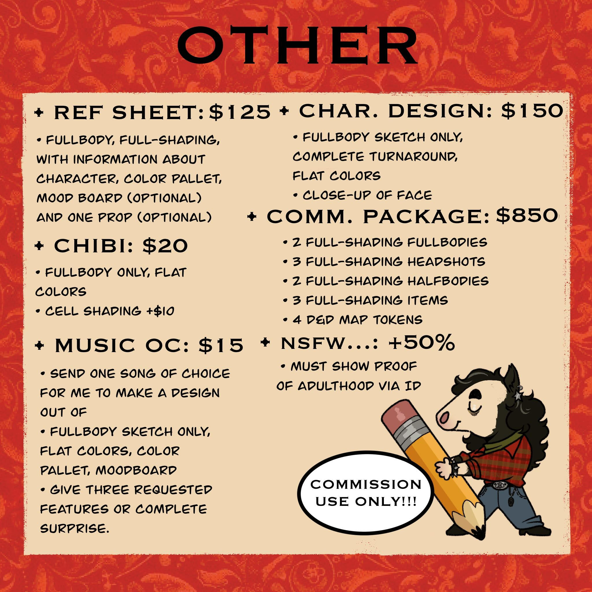 If you wish to commission me, please be sure to either fill out the form below with your preferred contact information or reach out to me on any of my socials!